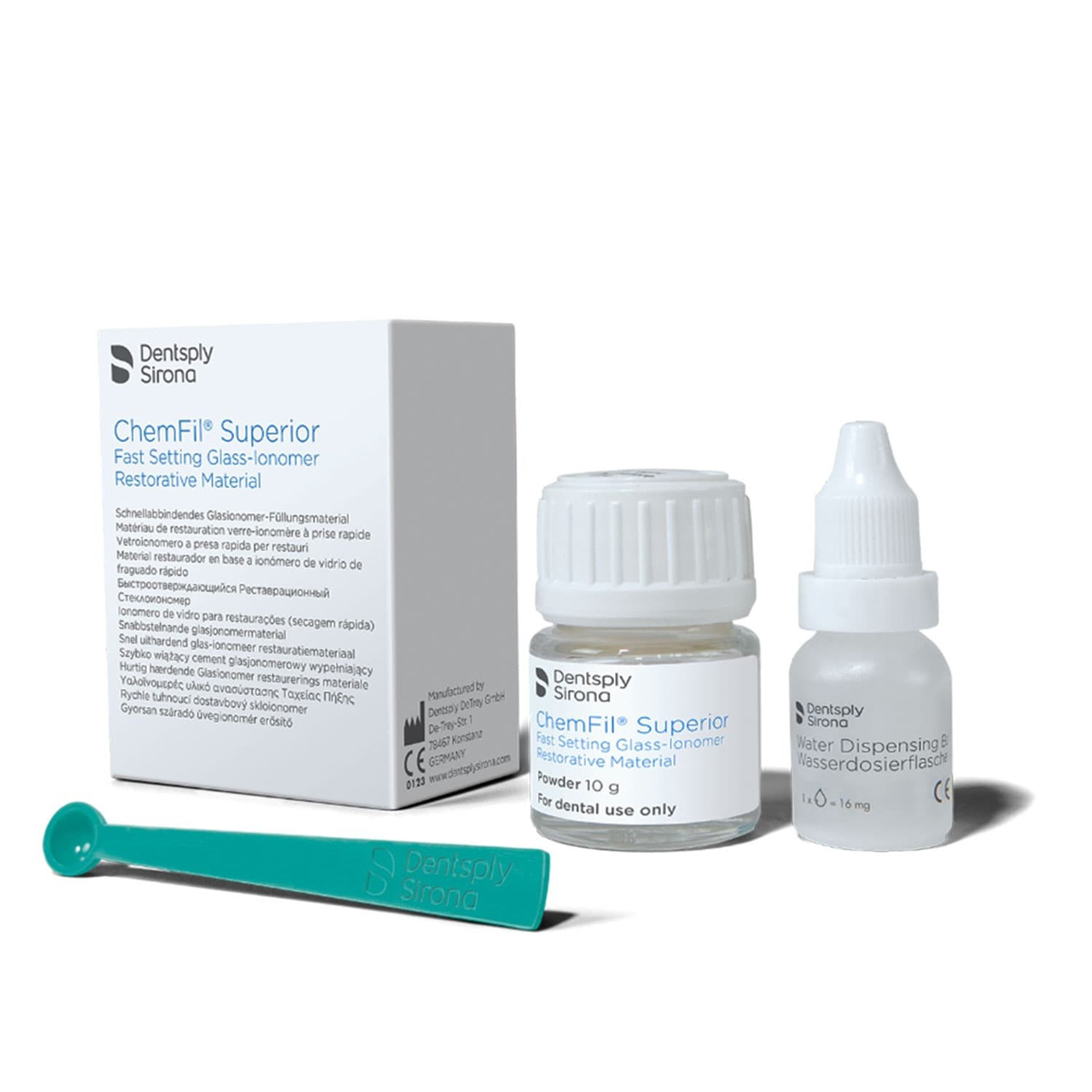 WZR'CHEMFIL SUPERIOR ChemFil® Superior to szybkowiążący materiał wypełniający na bazie jonomeru szklanego, składający się z mieszaniny szkła glinokrzemianowego i kwasu poliakrylowego. Proszek miesza się z wodą destylowaną w celu uzyskania materiału wypełniającego, który przylega do zębiny i szkliwa, tworząc szczelnie zamknięte, wytrzymałe i estetyczne wypełnienia.