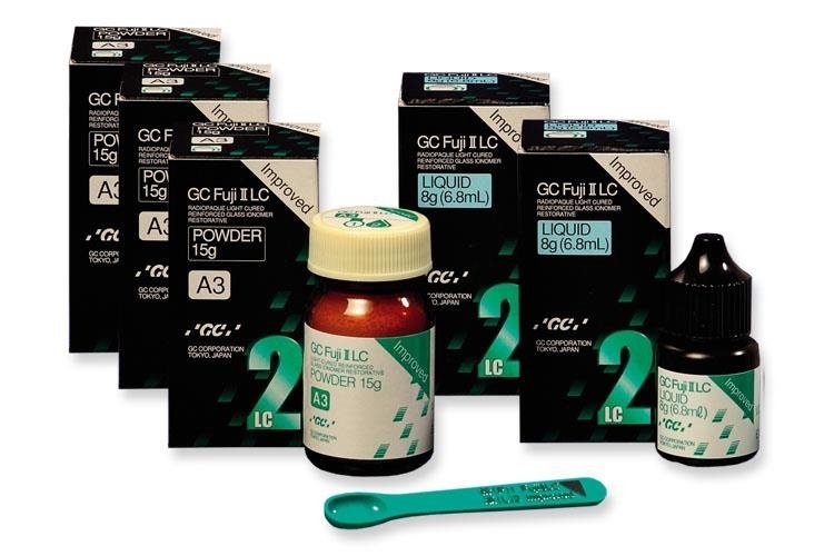 FUJI II LC ZESTAW 3-2 Zestaw 3 proszki + 2 płyny, światłoutwardzalnego, modyfikowanego żywicą cementu glasjonomerowego GC Fuji II LC